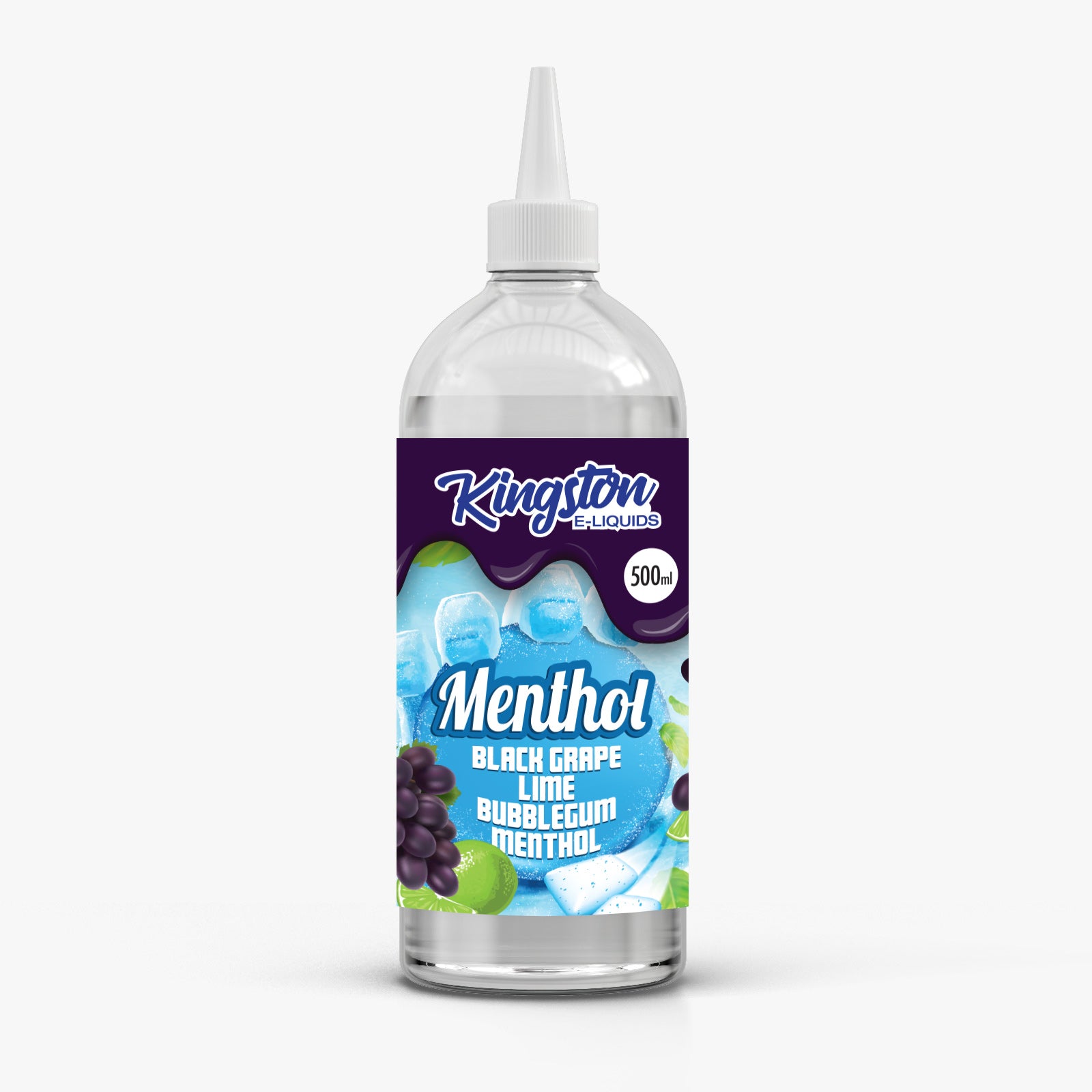 Kingston 500ml Menthol E-Liquid Shortfill - Black Grape Lime and Bubblegum - Black Grape Lime & Bubblegum Menthol / 70:30
